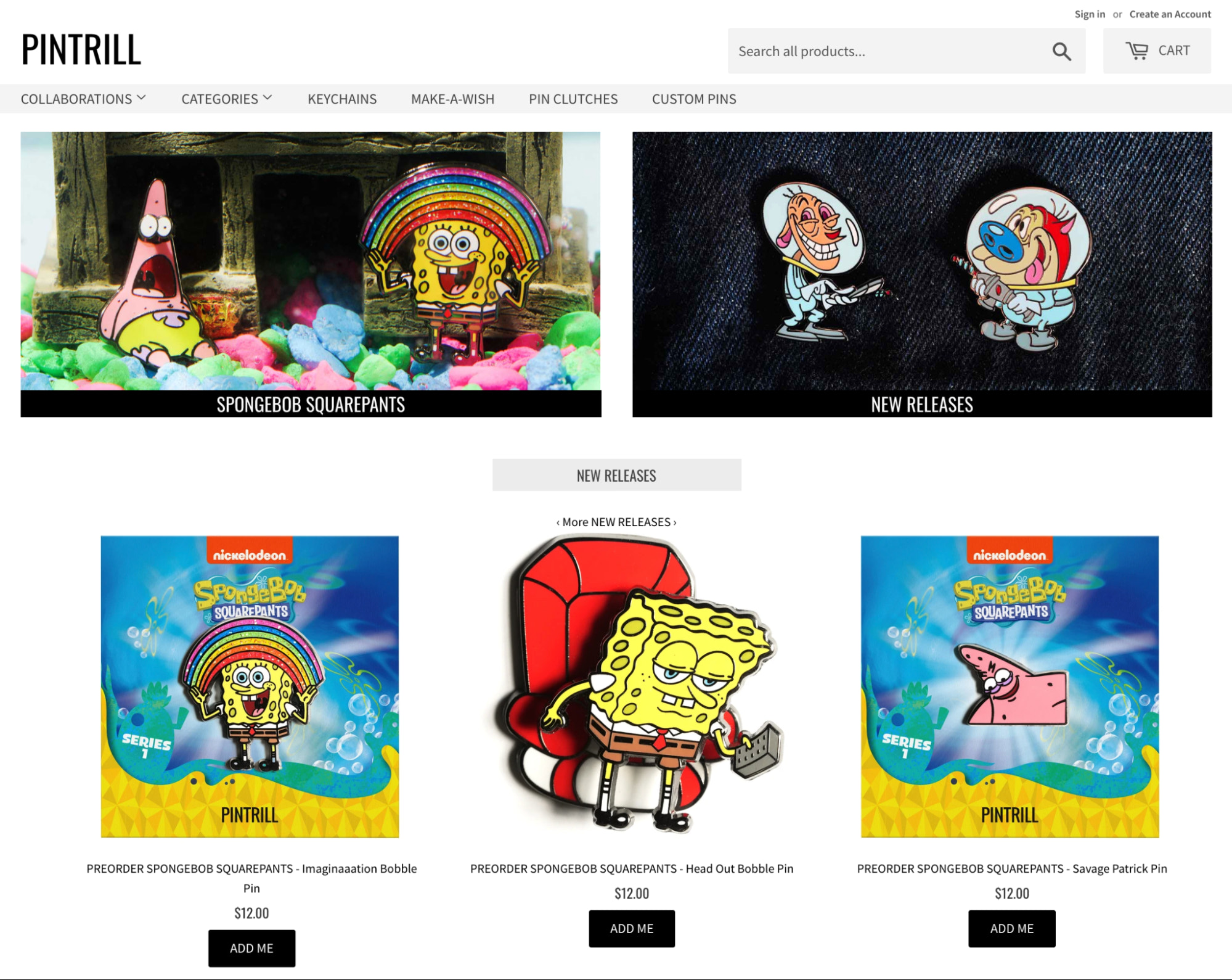 For example, Shopify MerchantPINTRILL, a leading enamel pin seller, features hundreds of pins on its ecommerce website.