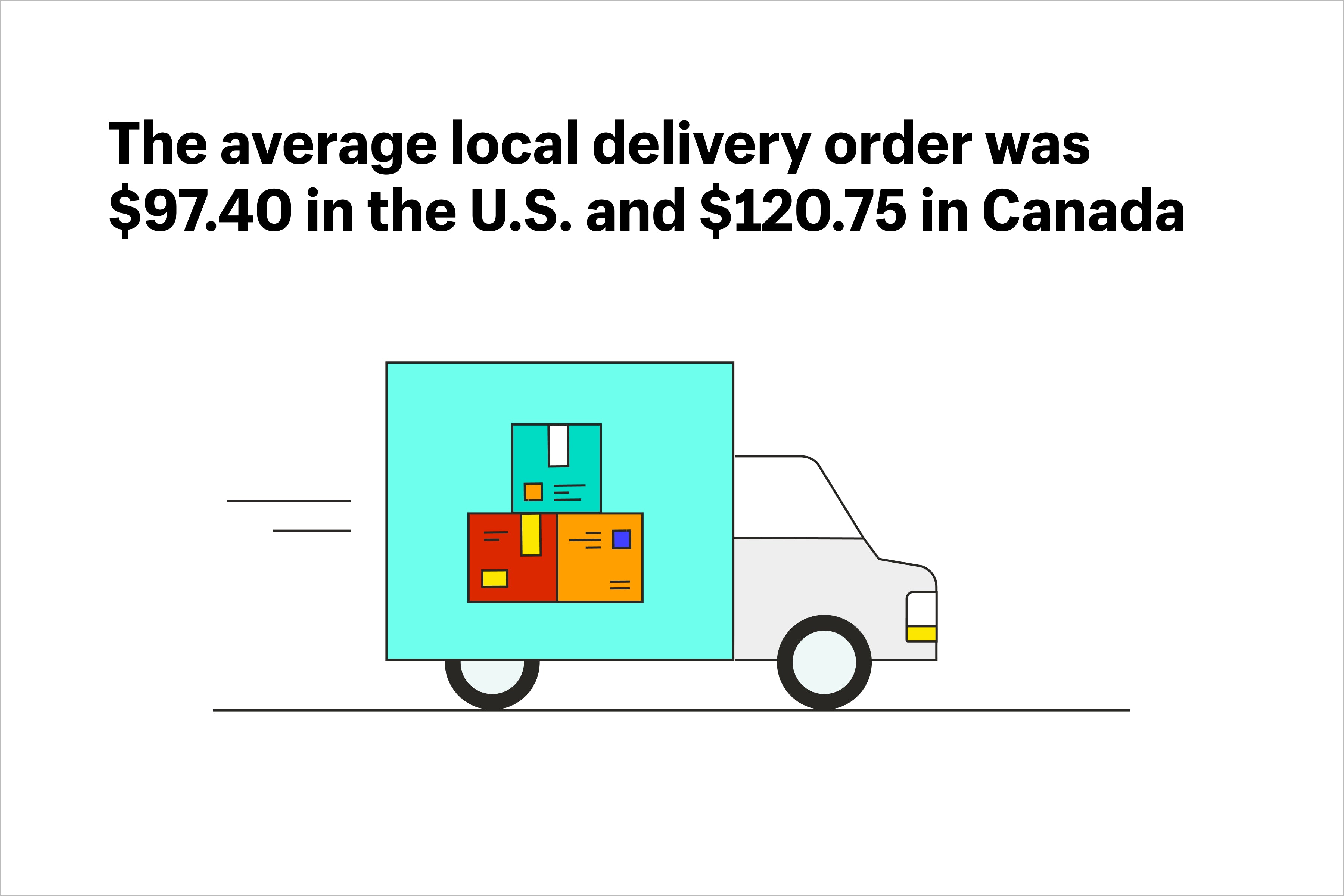 当地交货也很强劲,BFCM 2021在美国的平均运价为97.40美元。在加拿大,本地配送的平均总额为120.75加元。