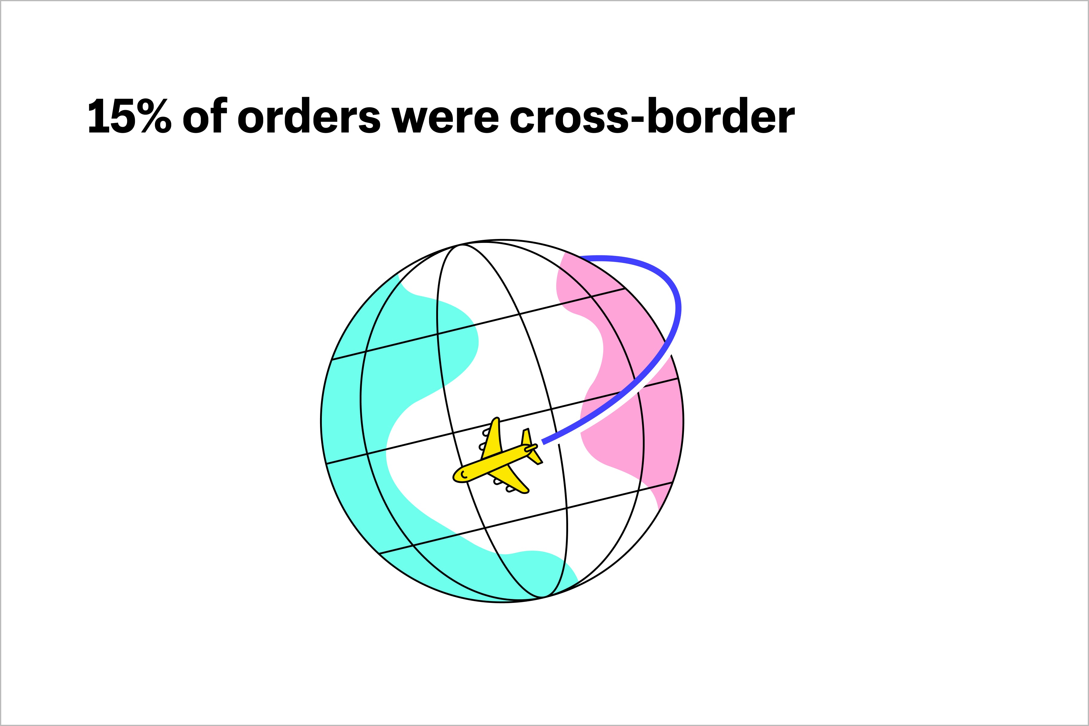 在BFCM 2021期间,全球15%的订单是跨境订单。