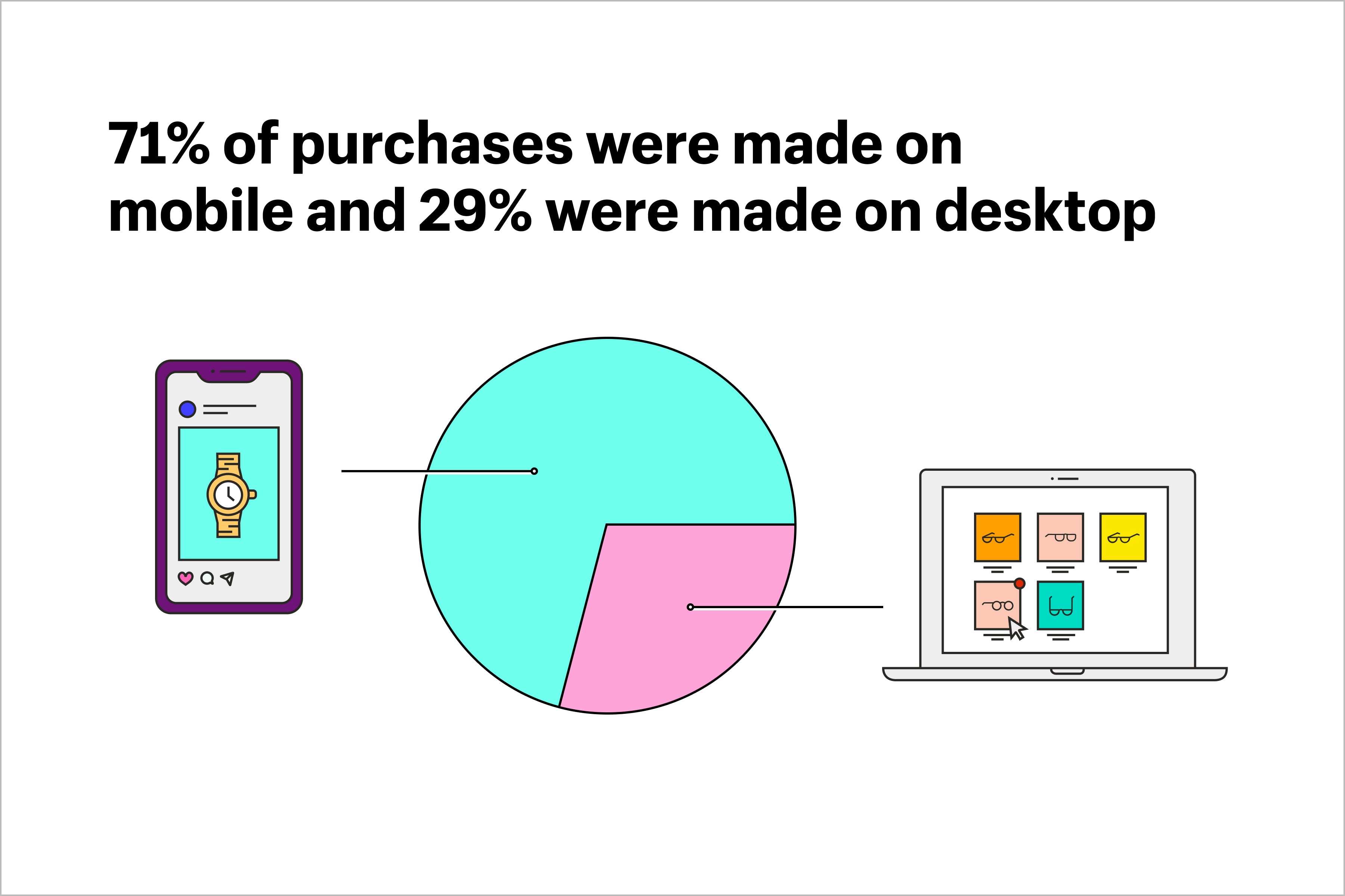 与2020年相比,这一数字有所增长,当时67%的销售是在移动端完成的,33%是在桌面端完成的。
