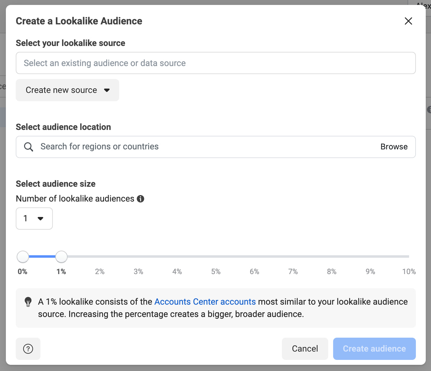 当你扩大你的目标并增加你的预算时,将相似用户的比例提高到3%,5%,甚至10%,这将为你提供更大的规模,同时你仍然能够与你的客户相匹配。