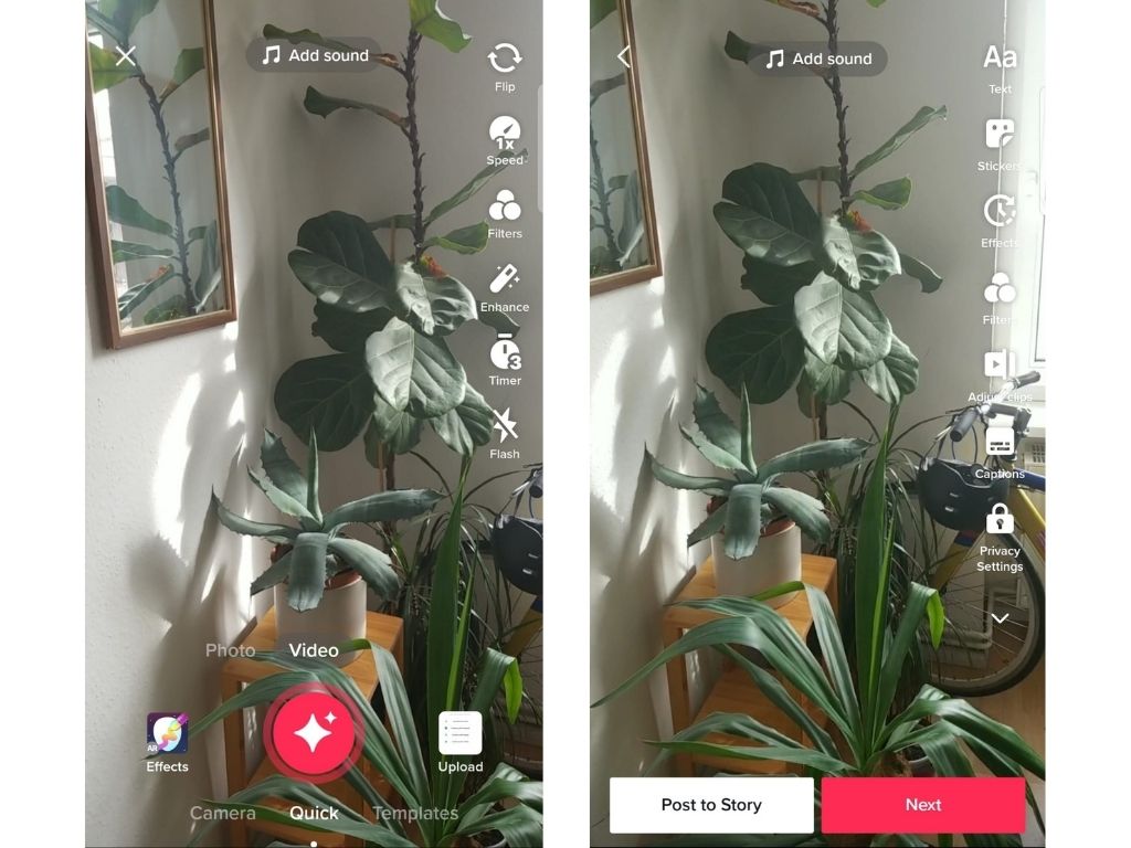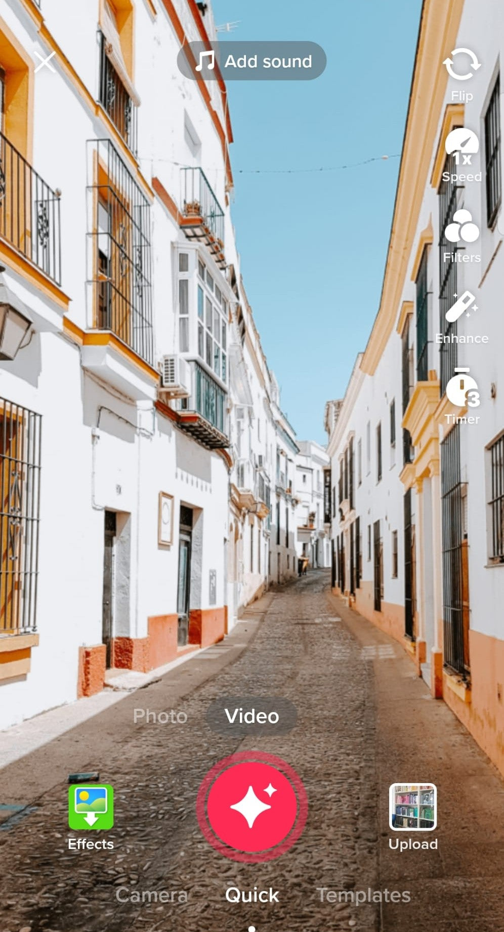 - 这将带你到TikTok视频创建屏幕,为你提供各种选项,可以为视频添加声音、效果、过滤器等。