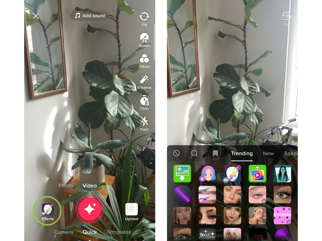 类似于听起来功能,TikTok有数百个影响你可以在你的内容旁边使用(甚至只是给自己留个胡子)!TikTok上的效果和声音的组合创造了该应用最具病毒式传播的一些趋势。