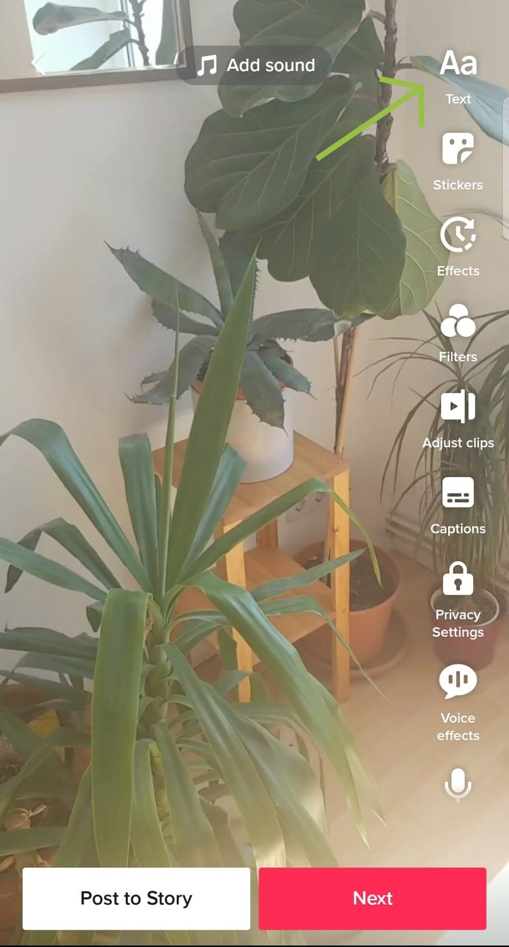- 拍完你的镜头,去编辑屏幕并点击文本屏幕右侧的按钮。