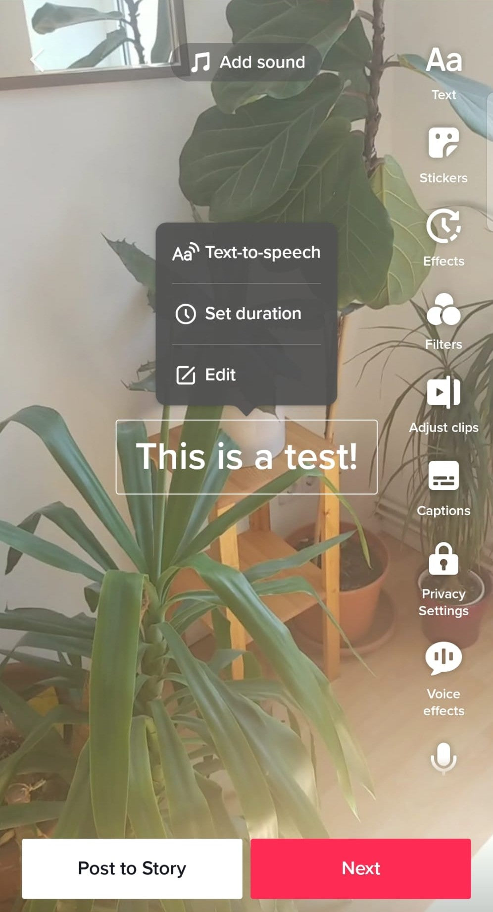 - 一旦你录制完视频并对结果感到满意,你就会被带到编辑屏幕上。在这里,您将能够添加文本,贴纸,效果,并调整剪辑和隐私设置。您还可以扫描视频中的音频,这些音频将在发布时显示为字幕。标题有助于使您的内容更易于访问。
