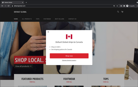 For now, to ensure that your international buyers can discover your products and pay in their local currency on your site, install Shopify’sGeolocation app。When a buyer from the country/region that you're now targeting lands on your site, Geolocation intelligently identifies where they're shopping from using their IP address and ensures they view your store in their local pricing.