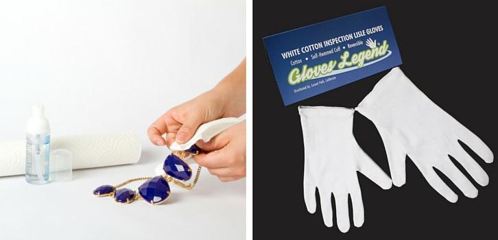 擦干净你的珠宝每次你碰它。我们aring cotton gloves may save you time and reshoots.