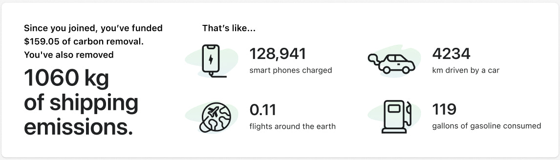 你使用Planet越多,你看到的影响就越大。你的商店的仪表板会告诉你你的订单减少了多少碳。