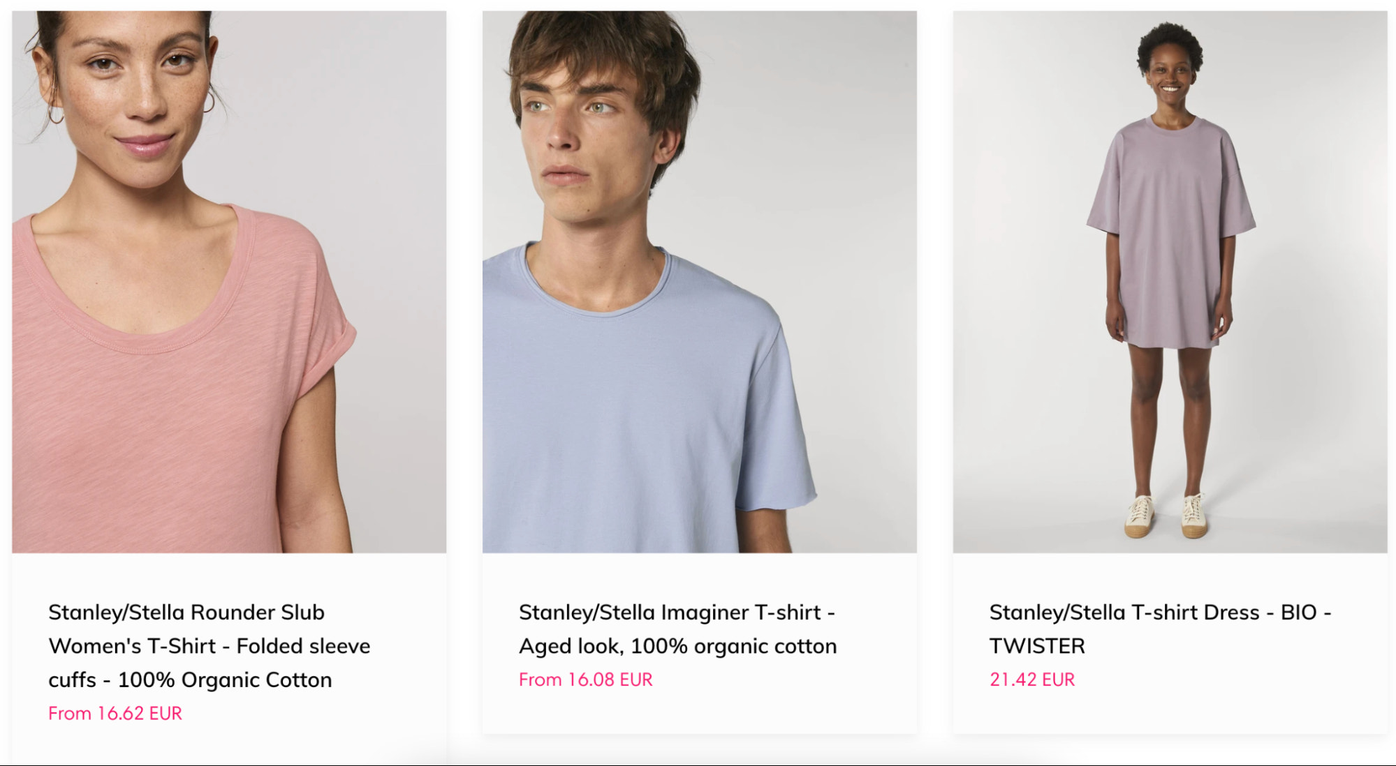 - 流行的t恤品牌:Bella+Canvas, Stanley/Stella等。