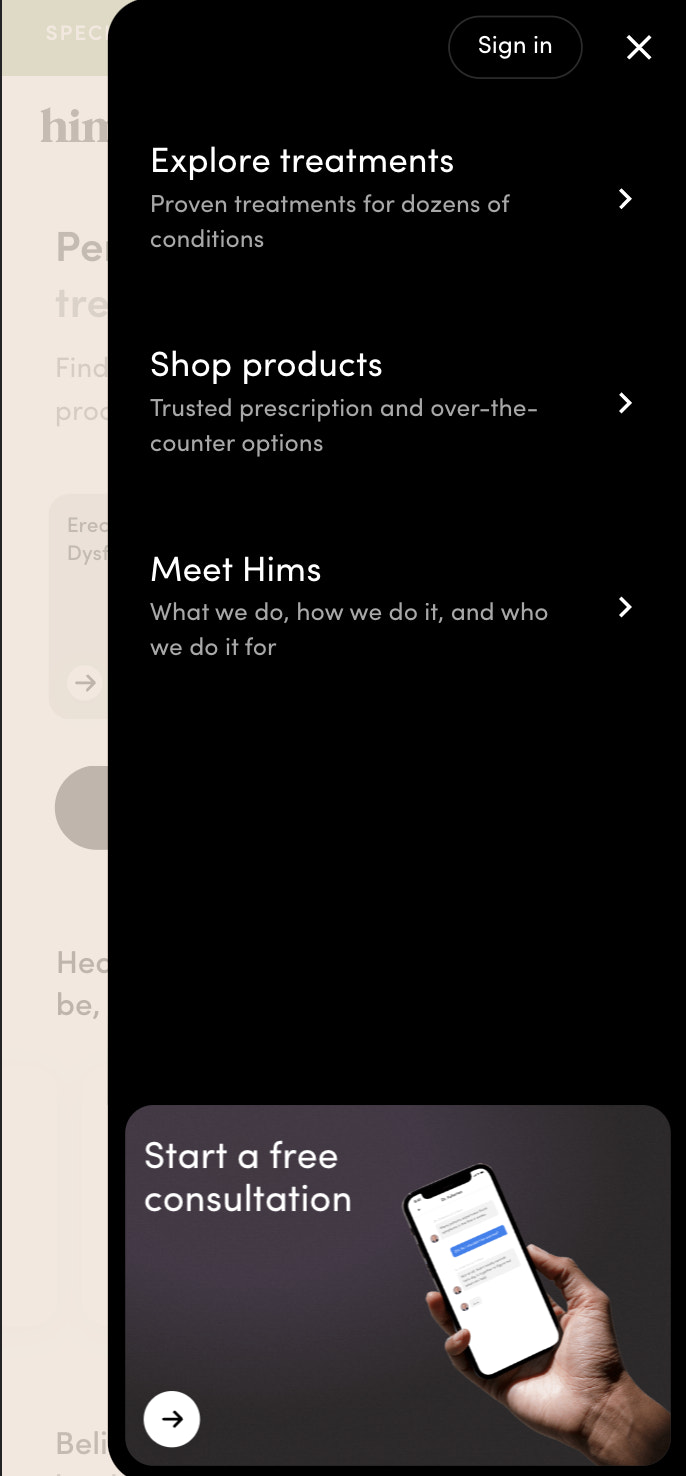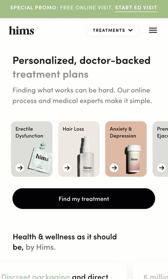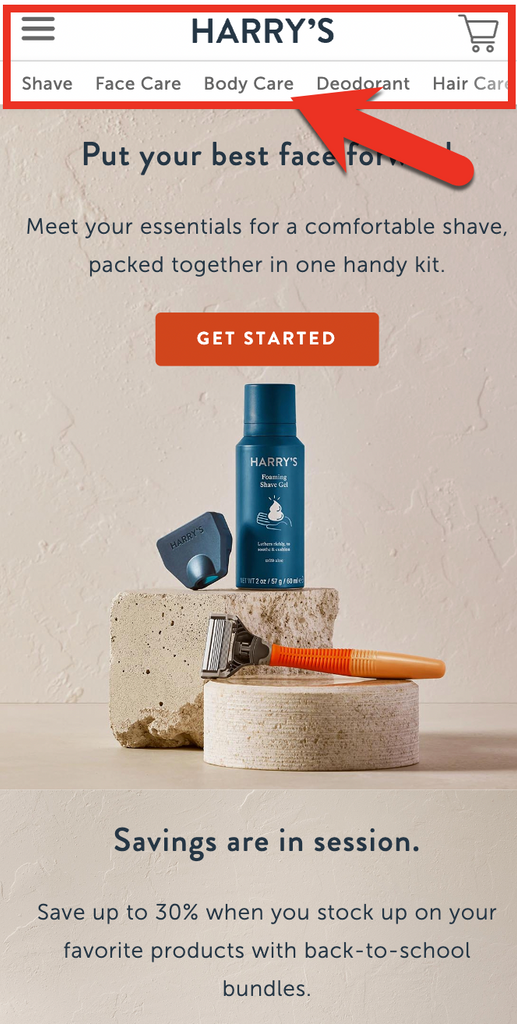 在你的桌面网站上,尽量确保你的标题不超过网站高度的20%。就像哈利的在保持其标志突出的同时: