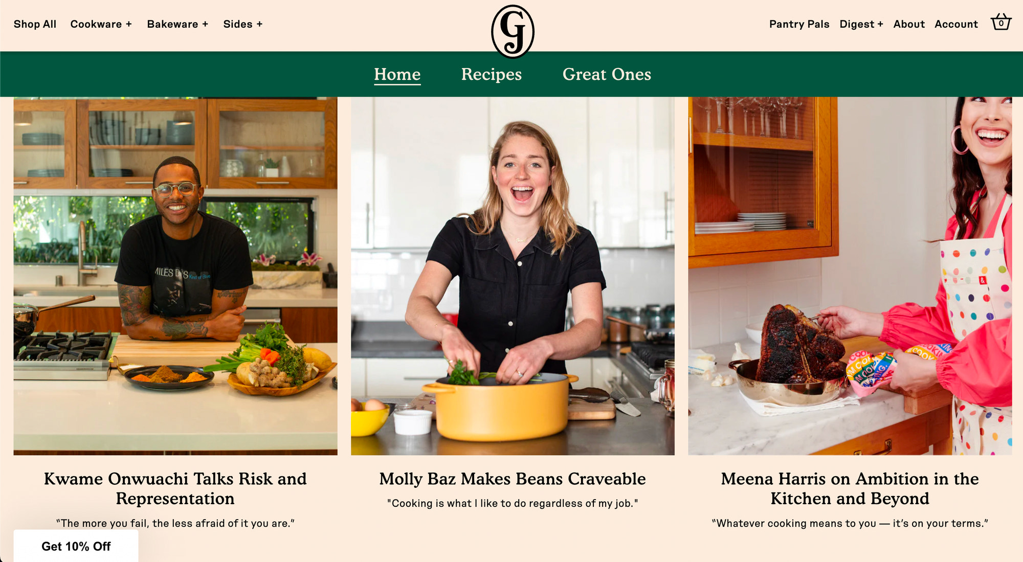 这个博客为读者提供了一种社区的感觉,让他们感觉就像在家里的厨房里,而不是在看博客。他们可以了解不同的文化、食谱或故事,并为他们的下一道大餐找到灵感。这是一个很好的渠道顶端资产,可以吸引合适的客户,建立信任,并在后台展示产品。