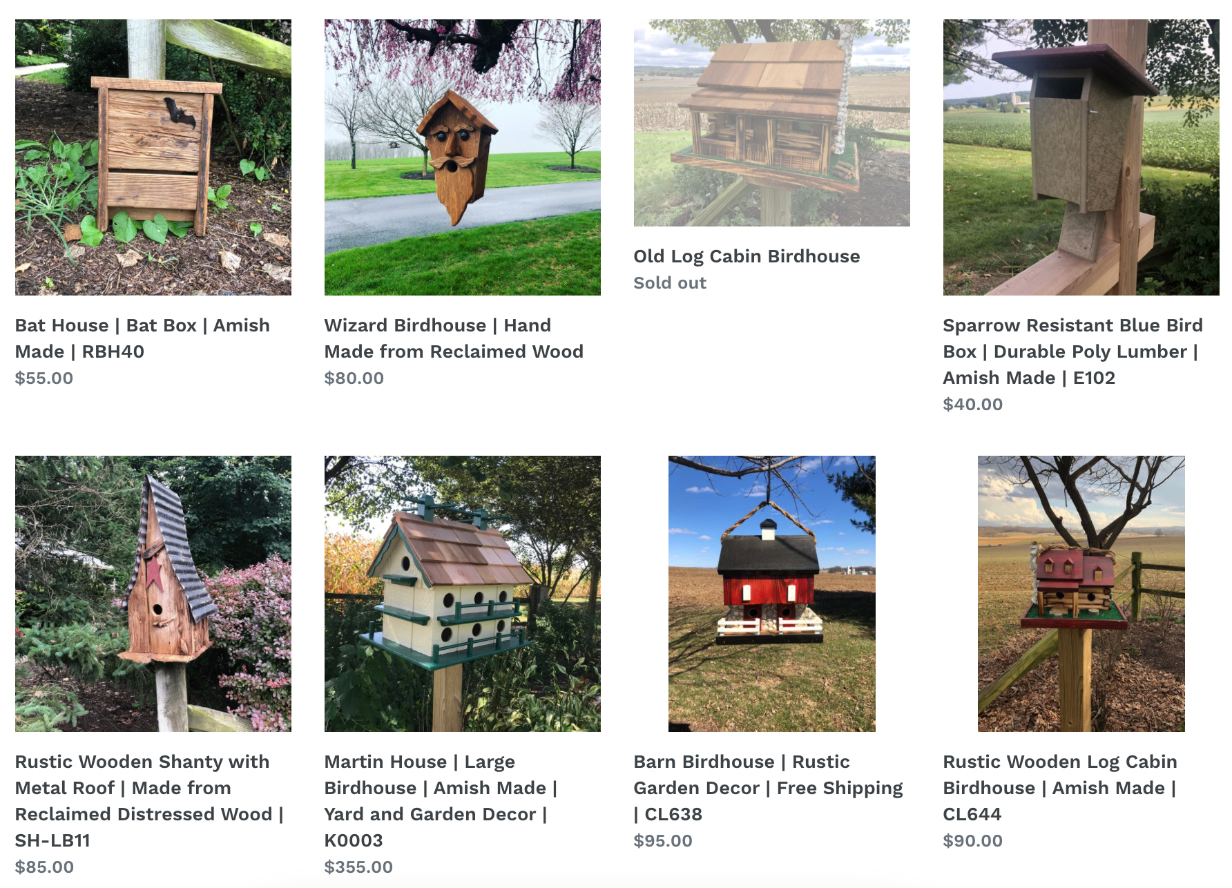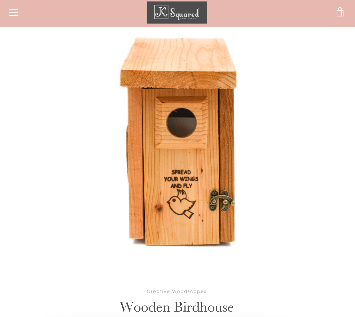 Many Shopify merchants sell wooden birdhouses online.K Squared artisan boutiquehas one for sale on its ecommerce website.