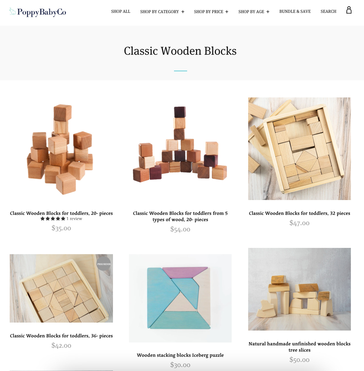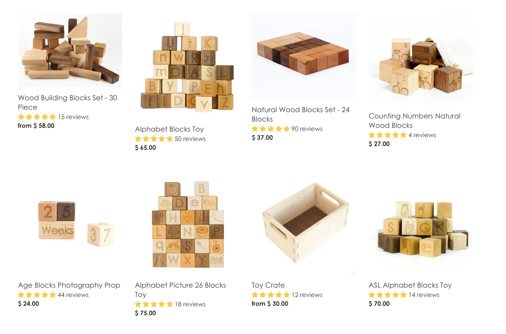 PoppyBabyCoandManzanita Kidseach sells different wooden blocks for children. You can get creative with your own collections.