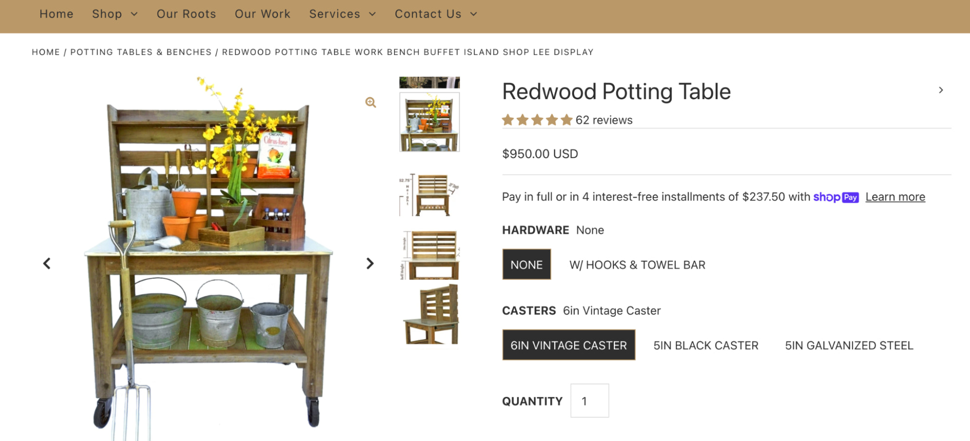 Old World Kitchenis another fantastic example of a skilled woodworker who built a business around those projects. The merchant started selling wares on Etsy andeventually moved over to Shopifyto scale the business.
