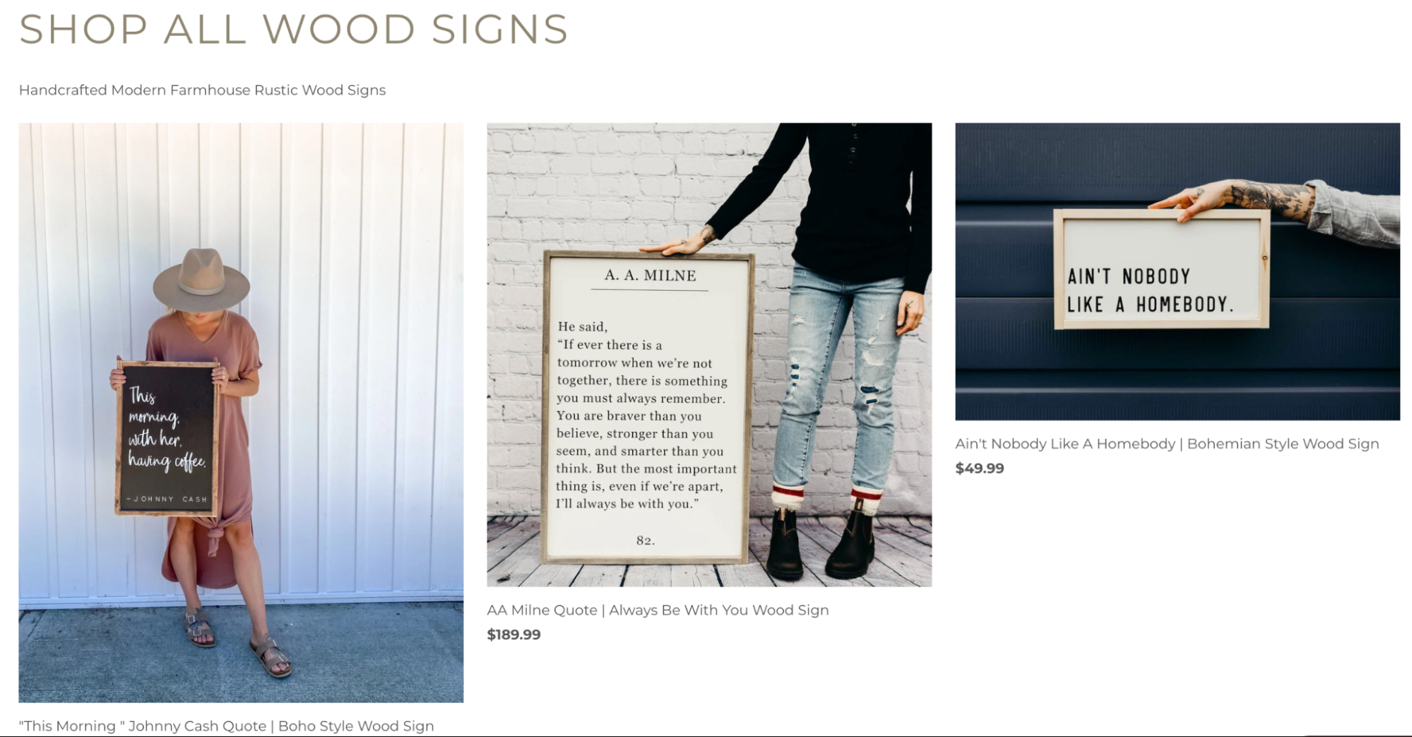 Shopify merchantTimber + Grayuses wood to create frames for signs with inspirational quotes.