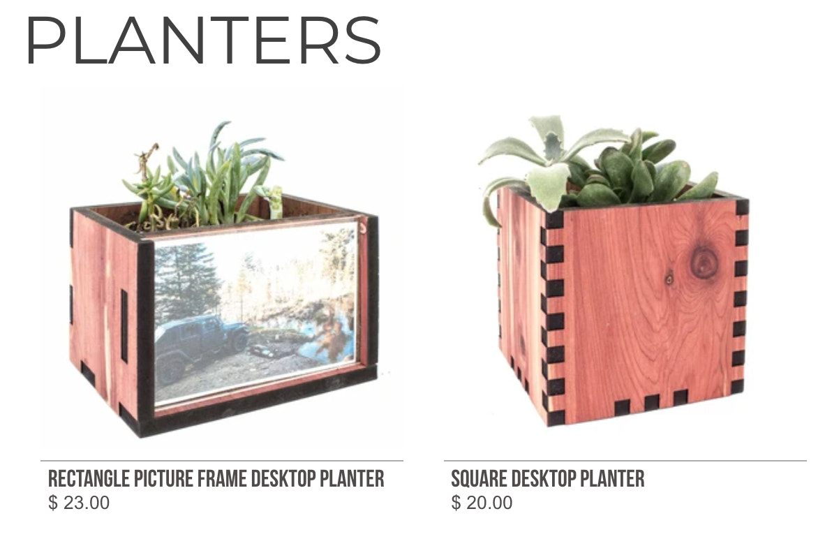 Wood is a great material for making planters and pots for all kinds of plants—everything from planter boxes for small home vegetable gardens to tiny succulent holders to be used as desk accessories.Woodchucksells desktop planters and also promises to plant a tree for every product sold.